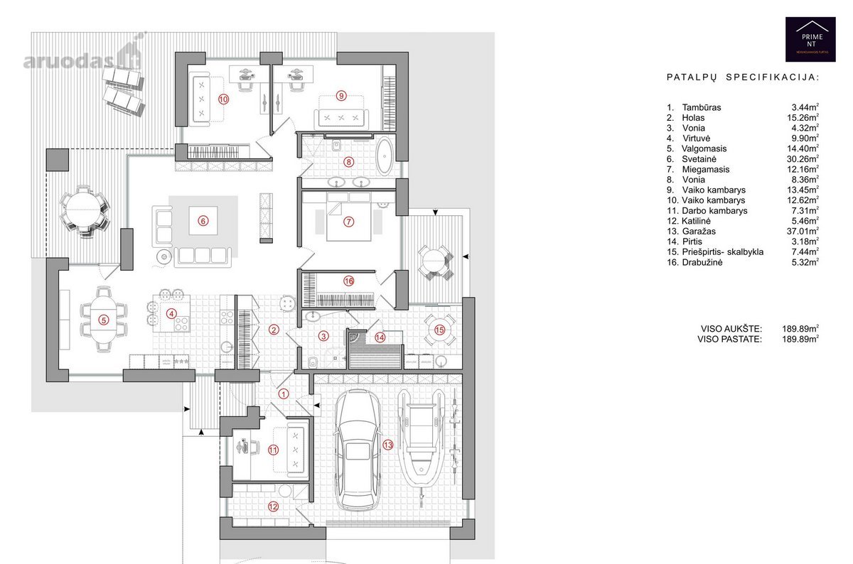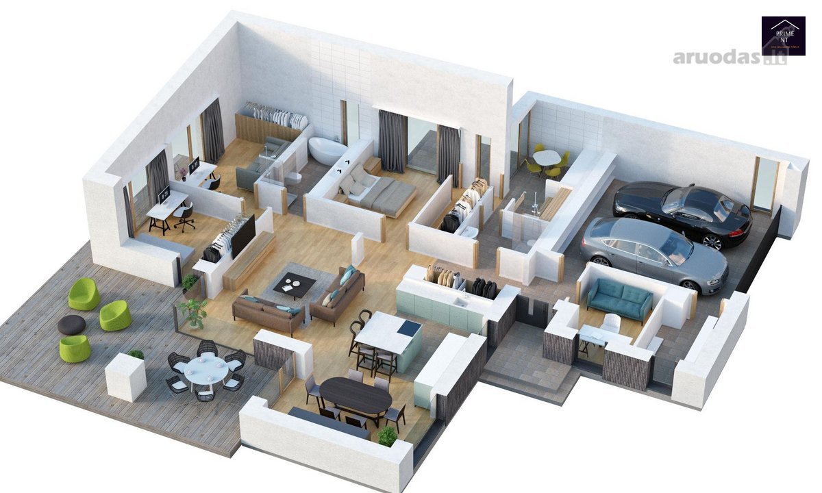 Erdvus garažas, kuriame tilps ne tik 2 automobiliai, bet ir buičiai būtini daiktai.